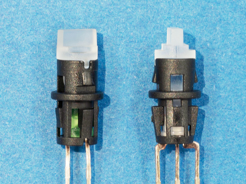 Light Guide Holder for 3mm (T-1) LED with Rectangular Front Face. Panel Mount Thickness 0.8mm. Mounting hole dia. Ø5.2mm. Housing Nylon 66. Front Surface Polycarbonate with Textured Matte Finish