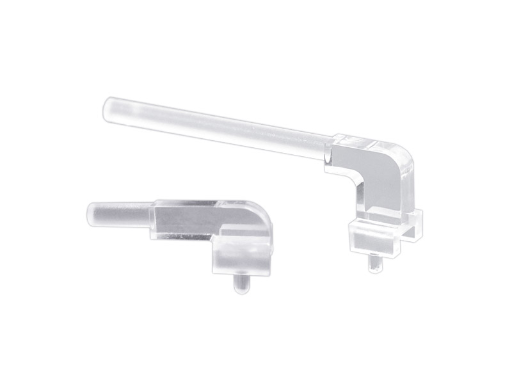 Right Angled 90° PCB Press Fit Mount Round Lens single station Light Pipe. Material Polycarbonate. Lens surface diameter Ø2.8mm.