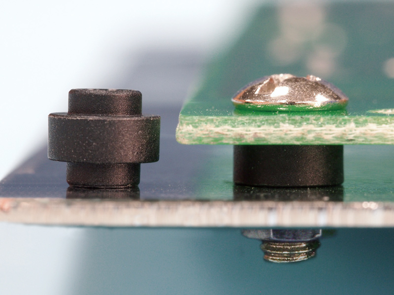 Round Spacer Dual Snap in. Snap in dia. Ø 4.3mm. IDxH 3.2×3.85mm. Material Nylon 6T. Color Black
