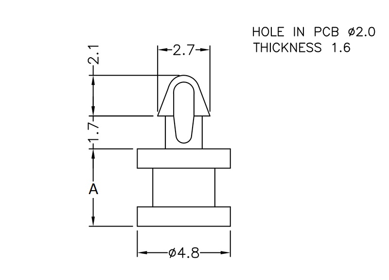 Rest support provided with a snap lock for a 2 mm mounting hole. Spacer length 4 mm.