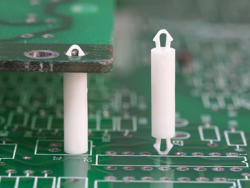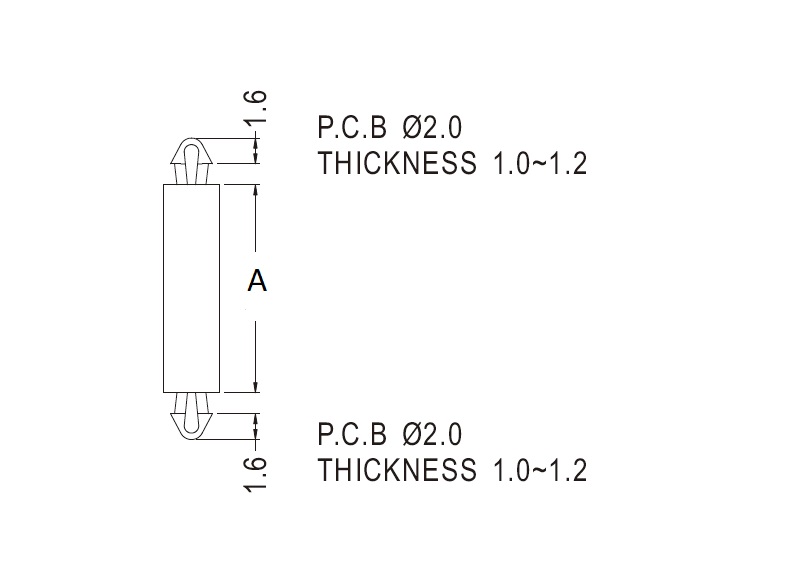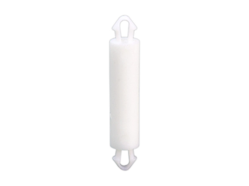 Dual locking support post. Snap lock teardrop design allows fixation into small holes. Top hole 2 mm. Bottom hole 2 mm. Length 12.9 mm.