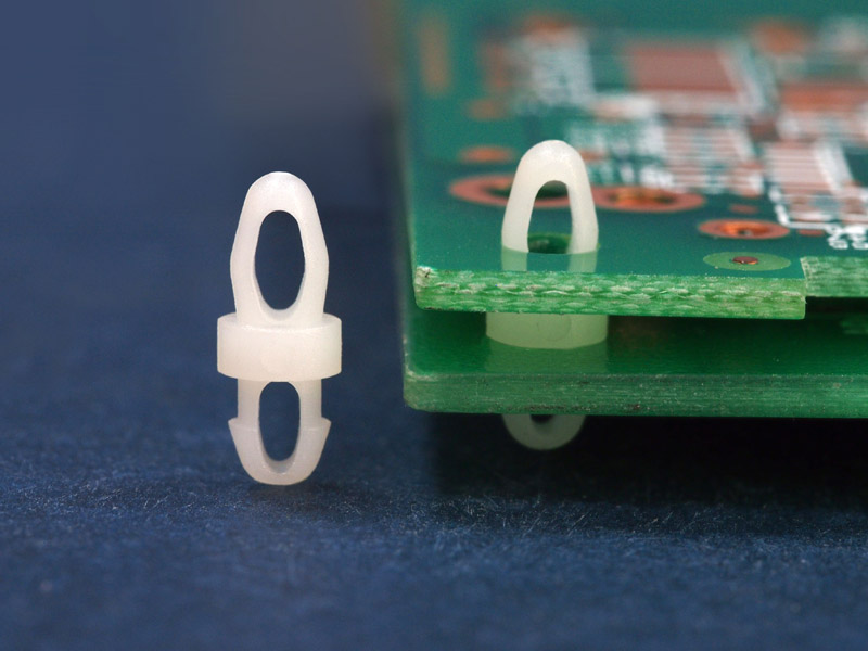 Dual locking support post. 3.1 mm snap fit top hole and 3 mm snap lock bottom hole. Standoff height 2 mm.