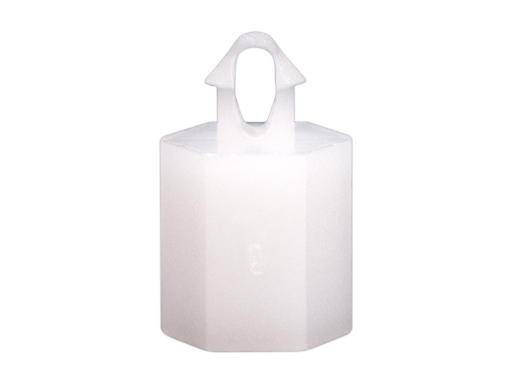Snap lock hexagonal M2 spacer provided with an arrowhead for a 2.5 mm mounting hole. Spacer length 6.5 mm.