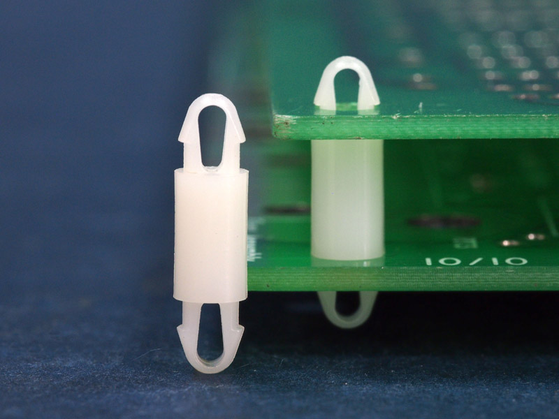 Dual locking support post. Snap lock teardrop design allows fixation into small holes. Top and bottom hole 3.5 mm. Spacer length 16 mm.