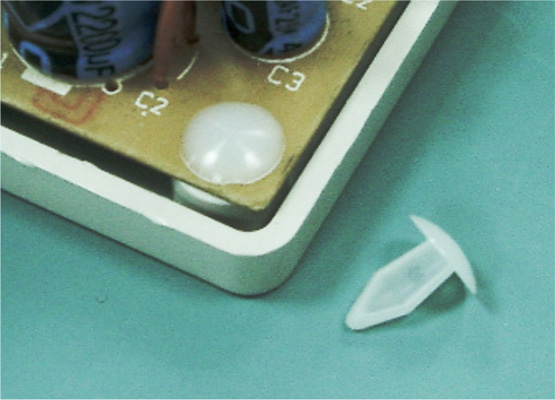 Mini Mounting Button. Material Nylon 66. Color Natural/Black. Mounting Hole Ø 3.0-3.2mm. Panel Thickness 0.8-2.0mm. Easy push-in installation with a neat finish.