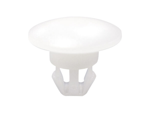 Snap Lock Rivet. Material Nylon 66. Mounting hole dia Ø 4.8mm. Panel Thickness 2.4mm. Color Natural/Black. This Mounting Button has a locking arrowhead which can be released from the PCB underside