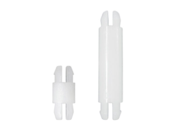 Spacer fits a panel top hole of 4 mm with a two prong snap fit and a bottom hole panel of 4 mm with a two prong snap lock. Standoff height is 3.2 mm.
