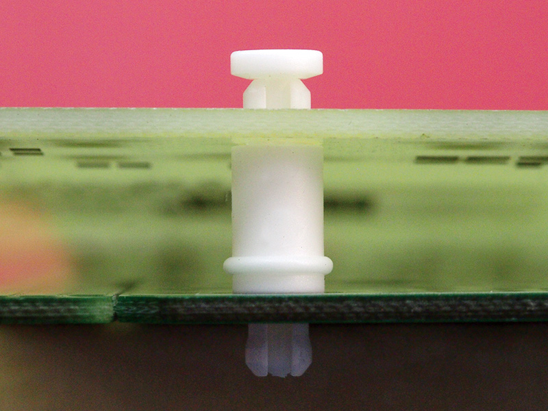 PCB support for 3.3 mm top and bottom panel hole. Firmly secured with removable locking pin (included). Standoff height 8 mm.