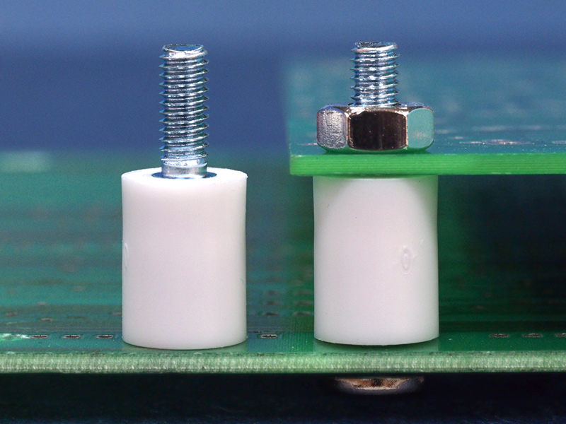Hexagonal M4 female/male Nylon Round spacer with metal threaded inserts for higher mechanical retention. Spacer body length is 12.7mm.