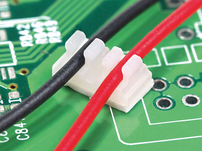 Wire Mount 1-way Adhesive. Holding dia. Ø1.1-1.37. Base Dimensions (LxW) 4.07×4.5mm. Nylon 66. Available in Natural or Black.