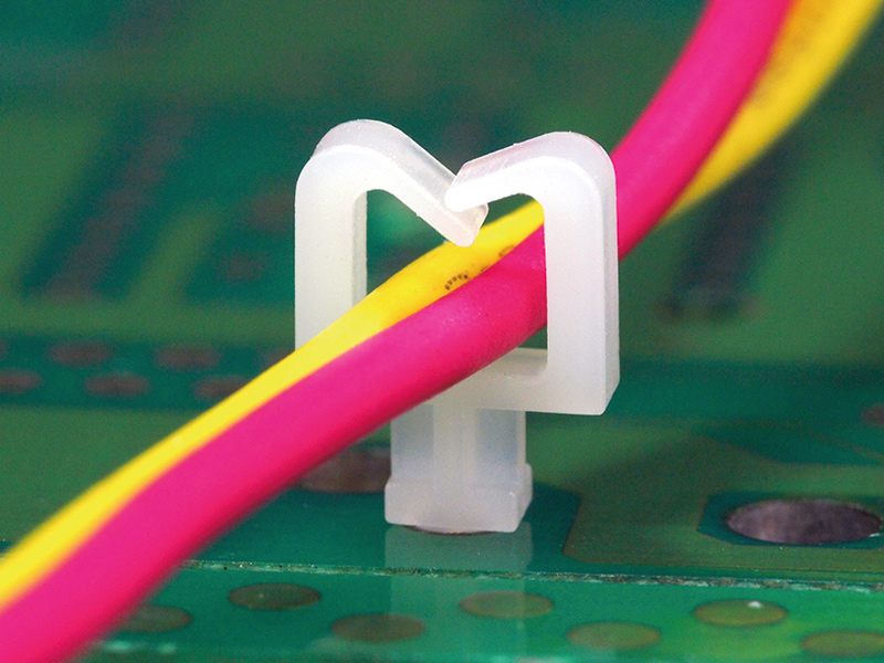 Snap Lock Micro Elevated Wire Saddle (WxH) 4.4×4.35mm. Mounting Hole dia. Ø2.0mm. Panel Thickness 1.6mm. Nylon 66. Available in Natural and Black