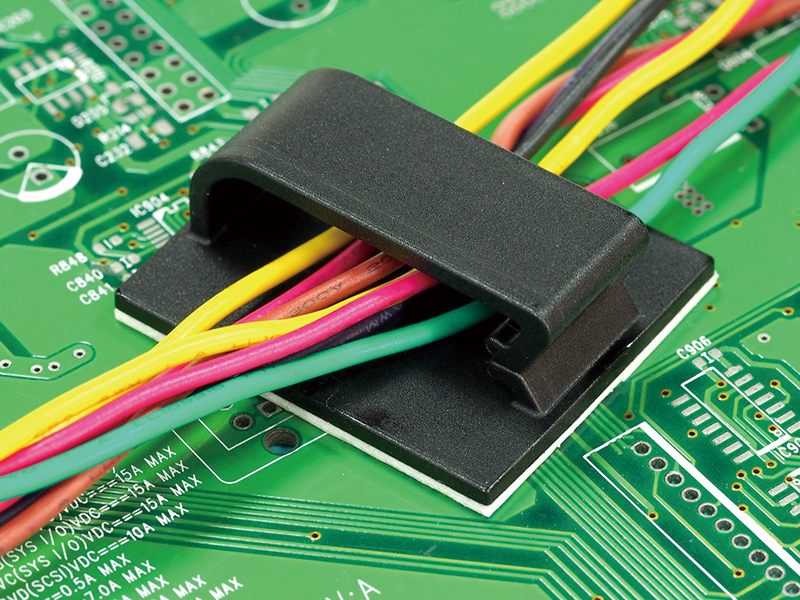 Adhesive Mount 37.3×32.0mm Wire Clip Side Entry. Holding Area 27.0×9.0mm. Material Nylon 66. Available in Natural or Black
