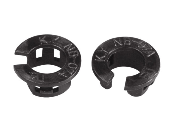 Nylon 66 Split or Open Bushing. Chassis Hole dia. Ø12.7mm. Panel Thickness 0.8-1.0mm. These Snap Bushings protect wires, cables, and tubing from sharp or uneven edges already assembled into holes. UL recognized.