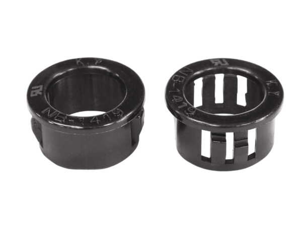 Nylon 66 Insulated Snap Bushing. Chassis Hole dia. Ø63.5mm. Panel Thickness 6.35mm. These Snap Bushings protect wires, cables, and tubing from sharp or uneven edges. UL recognized.