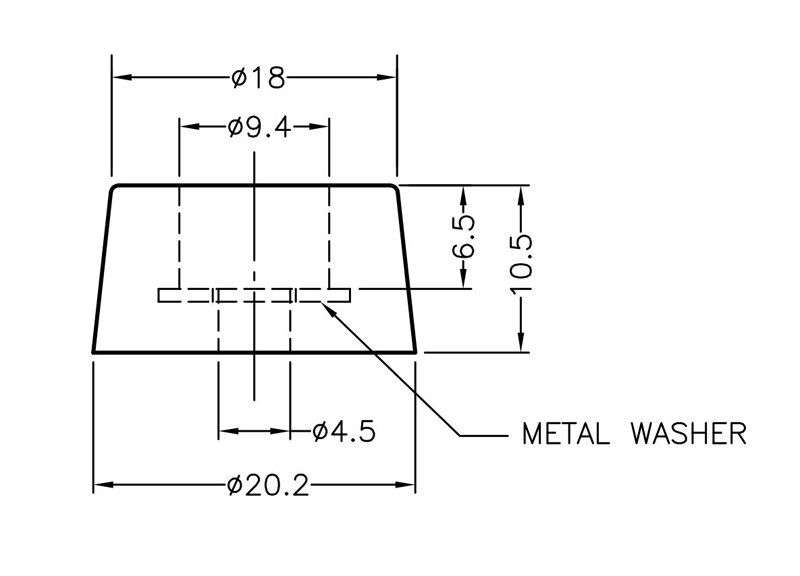 Rubber Foot Black with Internal Metal Washer 20.2×410.5mm. Screw Mount for Ø4.5mm Mounting hole