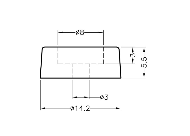 TPE Foot Black 14.2×5.5mm. Screw Mount for Ø3.0mm Mounting hole