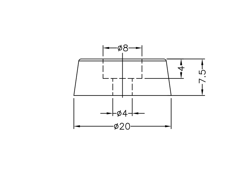 TPE Foot Black 20.0×7.5mm. Screw Mount for Ø4.0mm Mounting hole