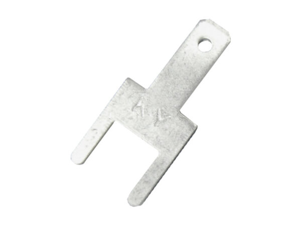 Straight Through Hole Solder Spade Terminal. Pitch 5.0mm. Tin Plated Brass. Current Rating 15 Amps. Tab size 2.8×0.8mm (.110″).