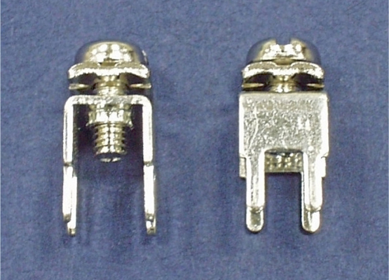 Top Entry or Vertical UNC 6-32 Screw Terminal for use with solid or stranded wire, crimp terminals, or lugs. Through Hole Mounting (THM) Current Rating 15 Amps. Made of Brass with Tin Plate. The compact design allows flexible placement in high-density wiring applications. Asembled with UNC 6-32 Screw 632-8ST.