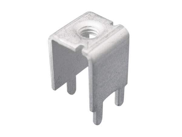 Top Entry or Vertical M3 Screw Terminal for use with solid or stranded wire, crimp terminals, or lugs. Through Hole Mounting (THM) Current Rating 15 Amps. Made of Brass with Tin Plate. The compact design allows flexible placement in high-density wiring applications. Screw not included.