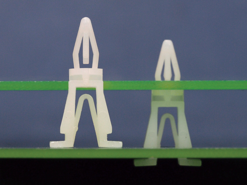 Spacer Reverse Mount with Snap Lock Bayonet nose. Material Nylon 66. Color Natural/Black. Chassis Mounting hole 7.0×6.0mm. Top hole dia. Ø 4.0mm. Thickness 0.8-1.7mm. Length 6.3mm.
