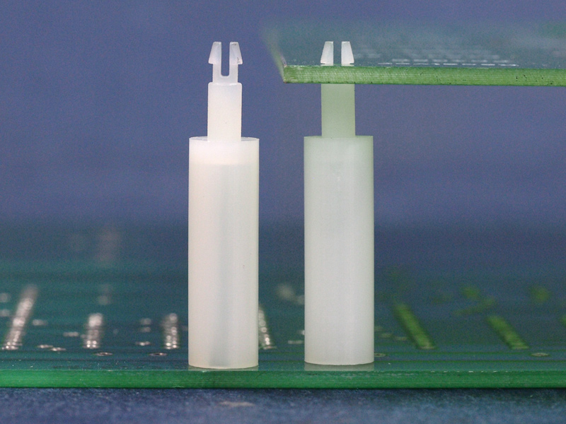 Rest support provided with pilot hole of 4 mm for a self-tapping screw provided with a two prong snap lock for a 2.2 mm mounting hole. Standoff height 25.4 mm.