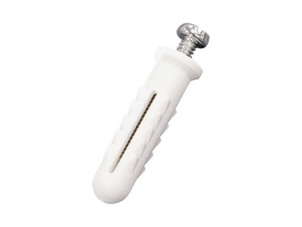 Polypropylene Universal Wall Anchors. Drill size Ø 6.0mm. Length 25.0mm. Color Natural/White. Also known as wall or rawl plugs, they expand when a screw is inserted, gripping the wall securely to support screw fixings.