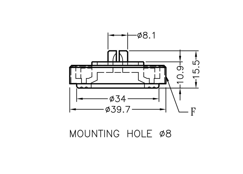 Polyethylene Foot with Golden Aluminum Cover Ø39.7×10.9mm with Locking Pin for a Ø8.0mm mounting hole