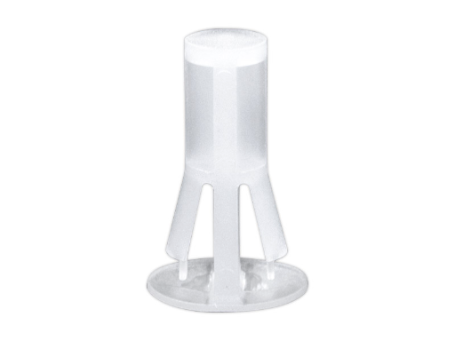 Reverse mount PCB spacer. Cupped design minimizes dust ingress and protrusion on chassis bottom. Flat rest prevents PCB from bending. Snap in fixation in chassis hole diameter of 4 mm. Standoff height 7.5 mm.
