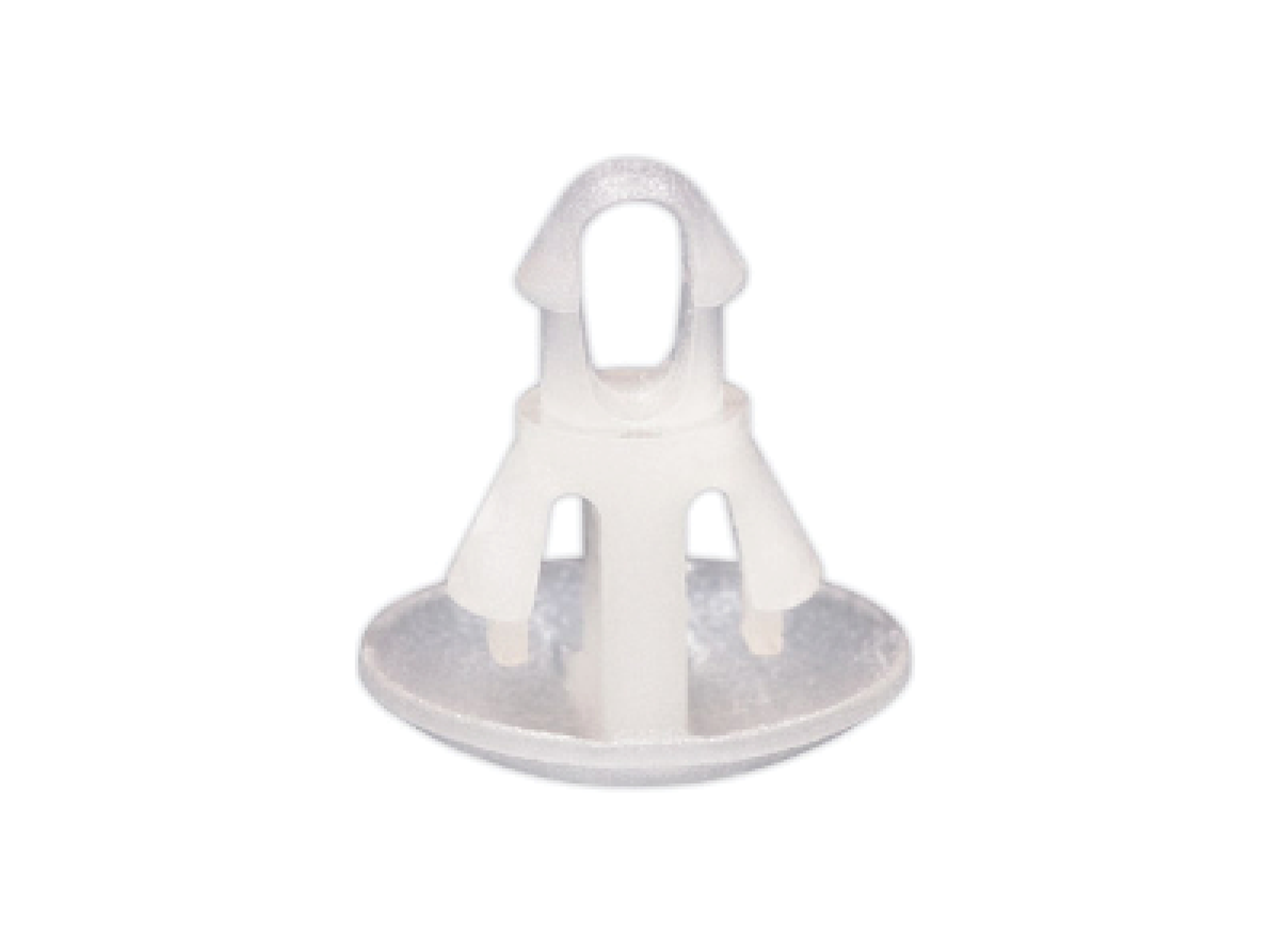 Reverse mount PCB spacer. Cupped design minimizes dust ingress and protrusion on chassis bottom. Teardrop snap fit for panel hole of 2.5 mm. Snap in fixation for chassis hole diameter of 4 mm. Standoff height 3 mm.