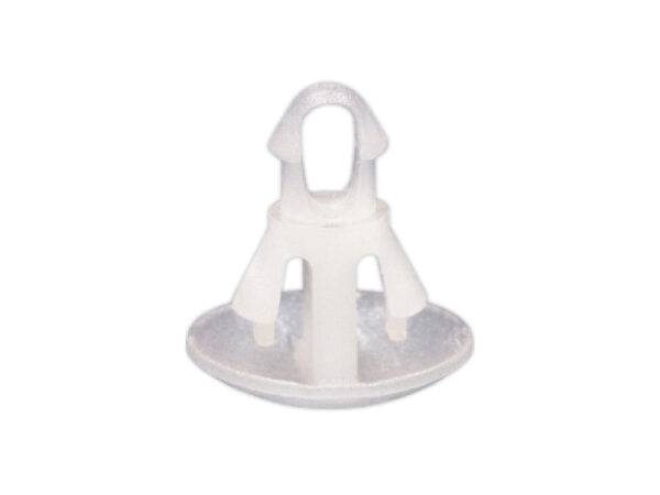 Reverse mount PCB spacer. Cupped design minimizes dust ingress and protrusion on chassis bottom. Teardrop snap fit for panel hole of 2.5 mm. Snap in fixation for chassis hole diameter of 4 mm. Standoff height 3 mm.