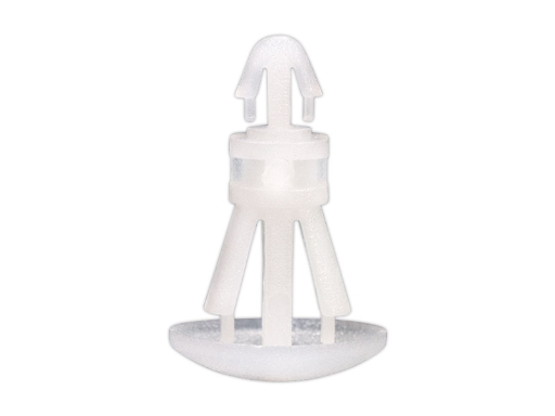 Reverse mount PCB spacer. Cupped design minimizes dust ingress and protrusion on chassis bottom. Arrowhead fits panel hole of 3 mm. Snap in fixation for chassis hole diameter of 4.8 mm. Standoff height 8 mm.