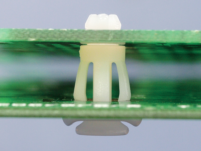 Reverse mount support for 4 mm top and a 7 mm bottom hole. Firmly secured with removable locking pin (included). Standoff height is 7 mm.