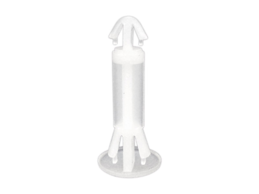 Reverse mount PCB spacer. Cupped design minimizes dust ingress and protrusion on chassis bottom. Arrowhead fits panel hole of 4 mm. Snap in fixation for chassis hole diameter of 5 mm. Spacer length 16 mm.