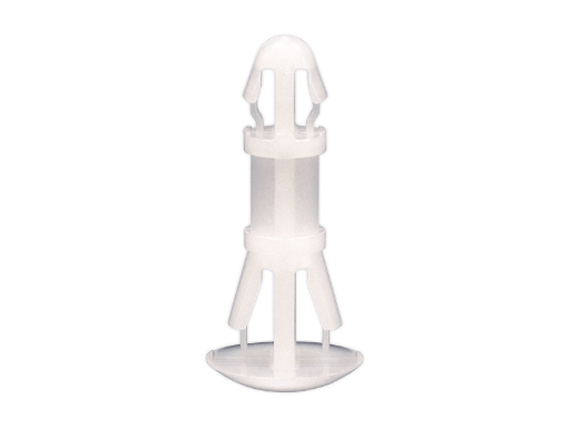 Reverse mount PCB spacer. Cupped design minimizes dust ingress and protrusion on chassis bottom. Arrowhead fits panel hole of 4 mm. Snap in fixation for chassis hole diameter of 5.4 mm. Standoff height 6 mm.