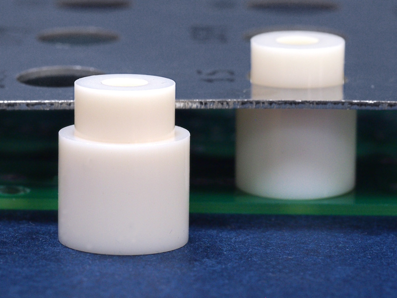 Polycarbonate (PC) Collar-Bush Spacer Collar for Bush RCXL-1. Length 14.0mm. To secure a PCB to a chassis using an additional screw and nut for additional strength. PCB hole dia. Ø 12.9mm. Chassis hole dia. Ø 6.1mm.