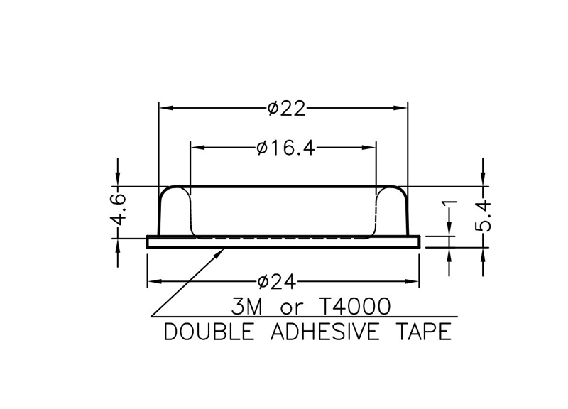 Recessed Self-Adhesive Rubber Bumper Ø24.0×5.4mm. The central cavity adds strength for high-impact use and allows for permanent attachment with nails or staples. These bumpers are often used on music equipment