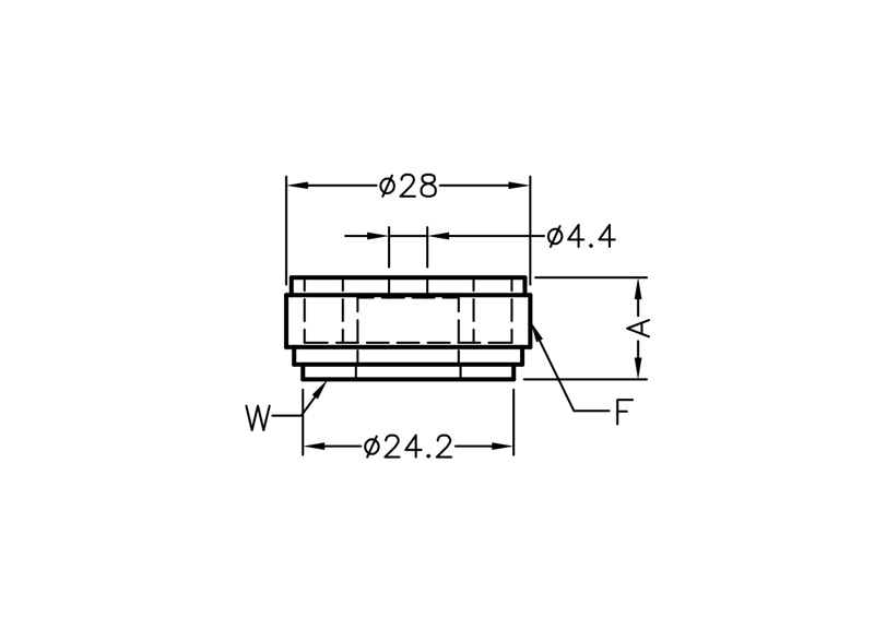 ABS Foot with Golden Aluminum Edge Ø28×11.7mm with EVA foam pad for to prevent sliding. Screwable by central Ø4.4mm hole. The Aluminum Covering gives a refined and elegant look