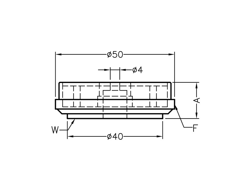 ABS Foot with Golden Aluminum Edge Ø50.0×14.8mm with EVA foam pad for to prevent sliding. Screwable by central Ø4.0mm hole. The Aluminum Covering gives a refined and elegant look