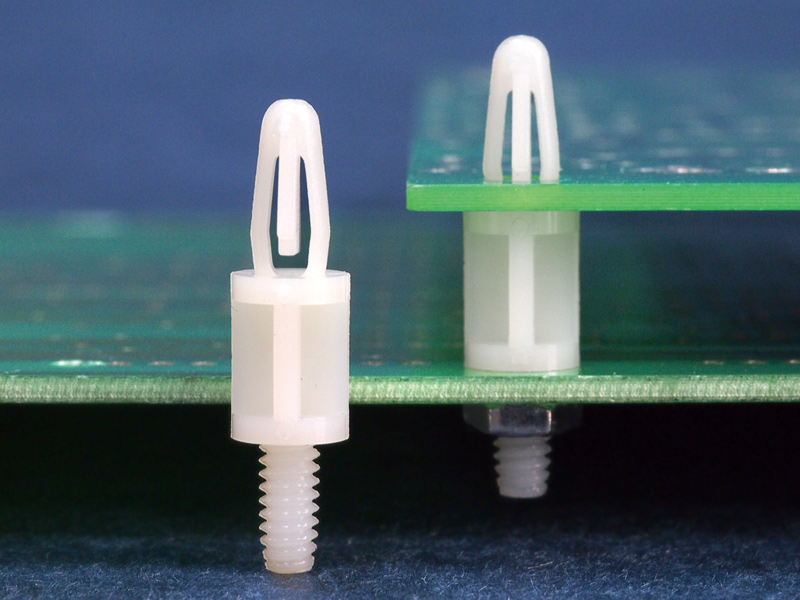 Spacer Snap Lock Male Threaded UNC 6-32 Hex Nylon 66 Bayonet Snap Lock spacer. Designed to fit a UNC 6-32 Chassishole. Top hole dia. Ø4.0mm. Thickness 1.6mm. Standoff height is 15.9mm