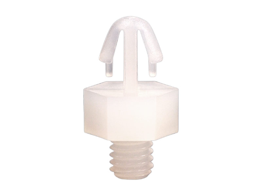 Metric Male Threaded M3 Hex Nylon 66 Snap Lock spacer. Designed to fit a Metric M3 Chassishole. Top hole dia. Ø3.0mm. Thickness 1.6mm. Standoff height is 15.0mm