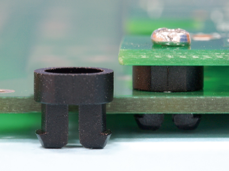 Self retaining spacer with support base providing the desired spacing between the chassis and the PCB. Chassis dia. Ø 5.5mm. Chassis Thickness 2.3-2.5mm. Standoff height is 2.6mm.