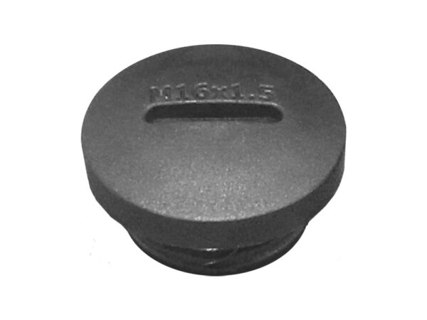 Threaded Slotted Liquid Tight Hole Plug. Threadsize M16x1.5. Material Nylon 66. Color Black. These sealing plugs are typically used to prevent water ingress.