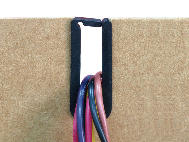 Edge protection snap-in cable mount (WxH) 9.5×24.0mm. Panel Thickness 1.0mm. Nylon 66. Color Natural and Black. Designed for edge panel mounting featuring a snap-in cable entry.