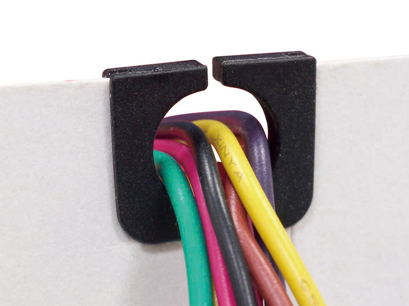 Edge protection Hinged Locking cable mount (WxH) 11.5×12.5mm. Panel Thickness 0.8mm. Nylon 66. Color Natural and Black. Edge mount closes on installation and provides light strain relief.