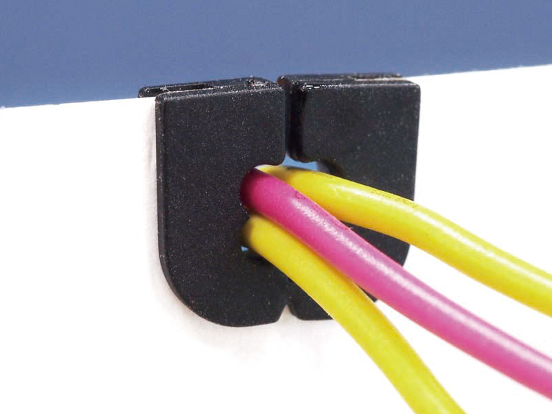 Edge protection Hinged Locking cable mount (WxH) 6.35×9.65mm. Panel Thickness 0.8-1.0mm. Nylon 66. Color Natural and Black. Edge mount closes on installation and provides light strain relief.