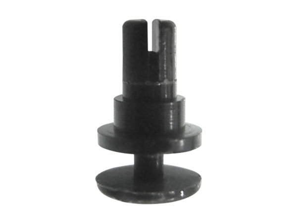 Spacer Snap In Rest Mount. Nylon 66. Color Natural/Black. Height 1.5mm. Tophole dia.Ø1.8mm. Thickness 1.0-1.2mm. 2 part system. Rivit Pin locks spacer in place