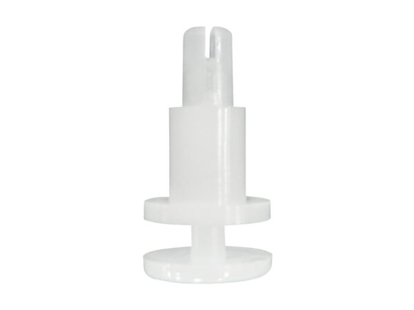Spacer Snap In Rest Mount. Nylon 66. Color Natural/Black. Height 4.0mm. Tophole dia.Ø2.0mm. Thickness 0.8-1.6mm. 2 part system. Rivit Pin locks spacer in place