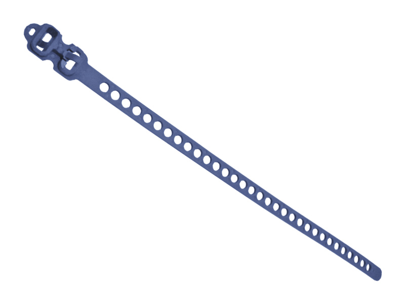TPE Releasable Hanking Tie. Length 80 mm. Color Black or Blue. A reusable flexible Strap Tie for gathering and securing cables in storage or transit.