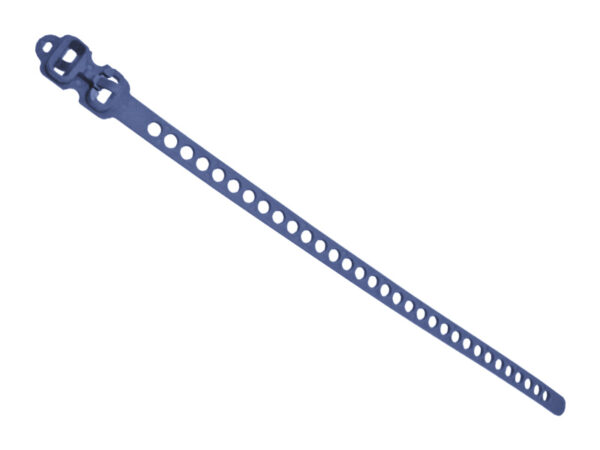TPE Releasable Hanking Tie. Length 205.6 mm. Color Black or Blue. A reusable flexible Strap Tie for gathering and securing cables in storage or transit.
